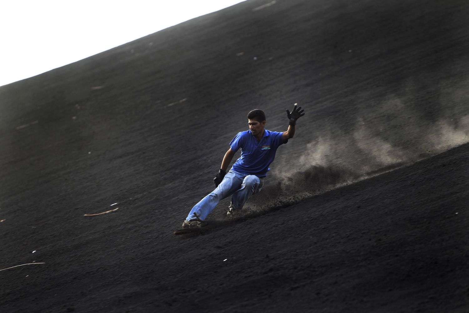 Yes. A literal volcano. Cerro Negro is an active volcano in South America, and it’s home to the sport of Volcano Boarding. Yep. Riders hike up the 700-meter black mountain wearing orange jumpsuits, goggles, and makeshift boards, then launch themselves downhill at speeds that can top 95 km/h. Insane.